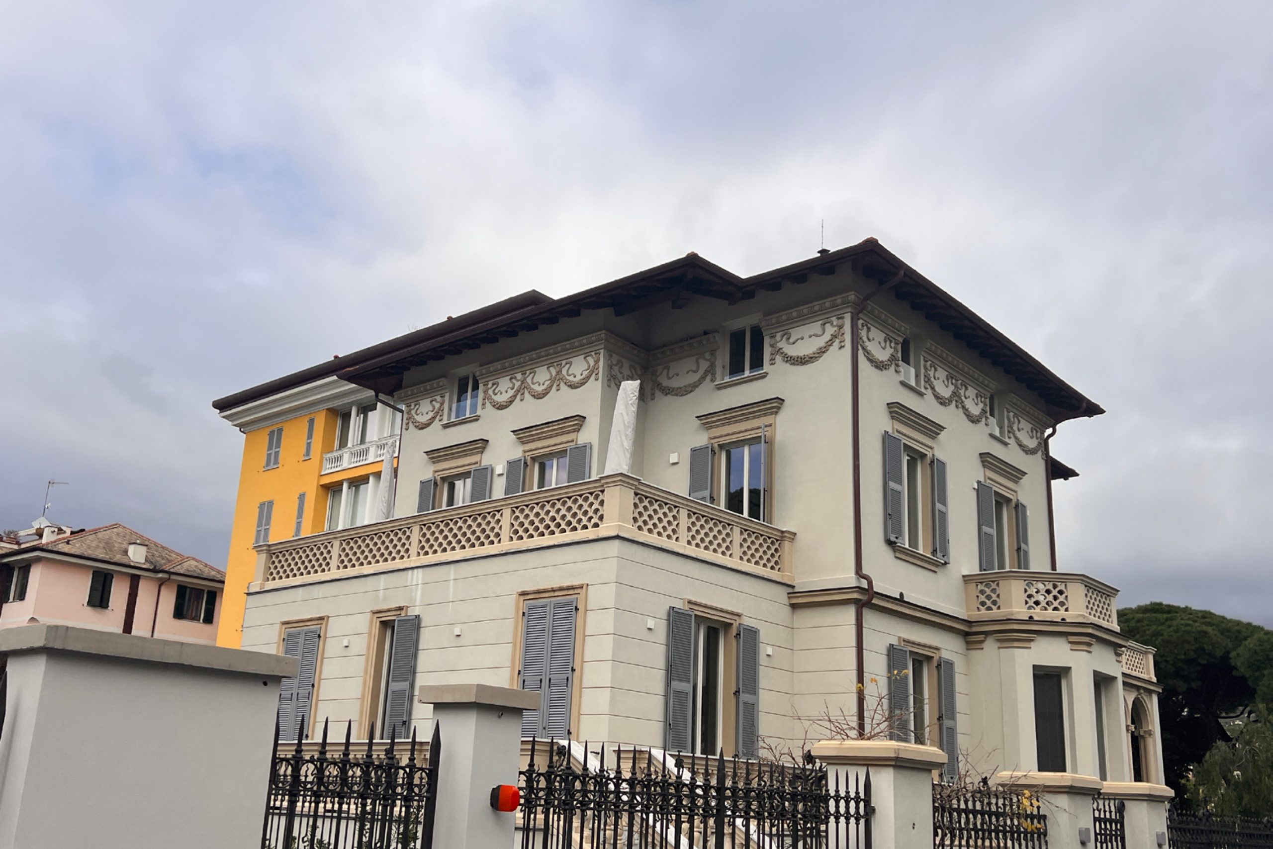 In un contesto di pregio architettonico a Rapallo, l’intervento su Villa Buenos Aires ha previsto un ampliamento in struttura metallica e la realizzazione di una nuova copertura, finalizzata a rendere abitabile il sottotetto.