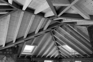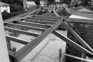 La copertura è stata realizzata con una struttura mista in acciaio e legno lamellare, scelta per garantire leggerezza, resistenza e un ingombro minimo, in linea con le caratteristiche dell’edificio esistente e le esigenze funzionali del nuovo volume.